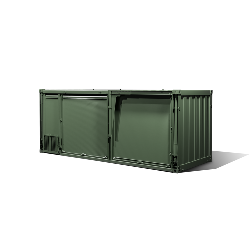 Kontener zaprojektowano jako autonomiczne zaplecze magazynowe, umożliwiające bezpieczne przechowywanie komponentów oraz ich wygodną obsługę w miejscu eksploatacji. Zastosowane systemy energetyczne, klimatyczne oraz hydrauliczne zapewniają właściwe warunki składowania części zamiennych oraz sprawną organizację prac logistycznych.