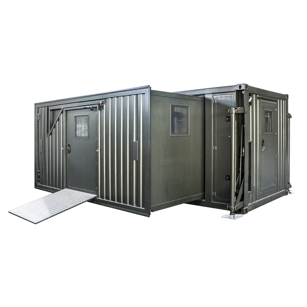 Zastosowany system elektrycznego rozsuwu ścian pozwala na uzyskanie 23,5 m² jednolitej powierzchni roboczej, co zapewnia ergonomiczne warunki pracy zespołu operacyjnego oraz swobodę organizacji stanowisk medycznych. Konstrukcja umożliwia zarówno automatyczne, jak i manualne rozłożenie kontenera.