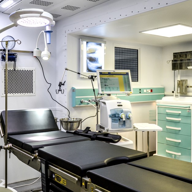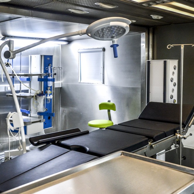 Wyposażenie medyczne umożliwia wykonywanie pełnego zakresu procedur w ramach Damage Control Surgery (DCS) oraz wybranych zabiegów odtwórczych.
