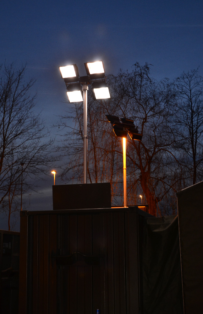 Rozbudowana instalacja elektryczna umożliwia zasilanie odbiorników zarówno wewnątrz kontenerów, jak i w przestrzeni namiotu technicznego oraz poza kompleksem.