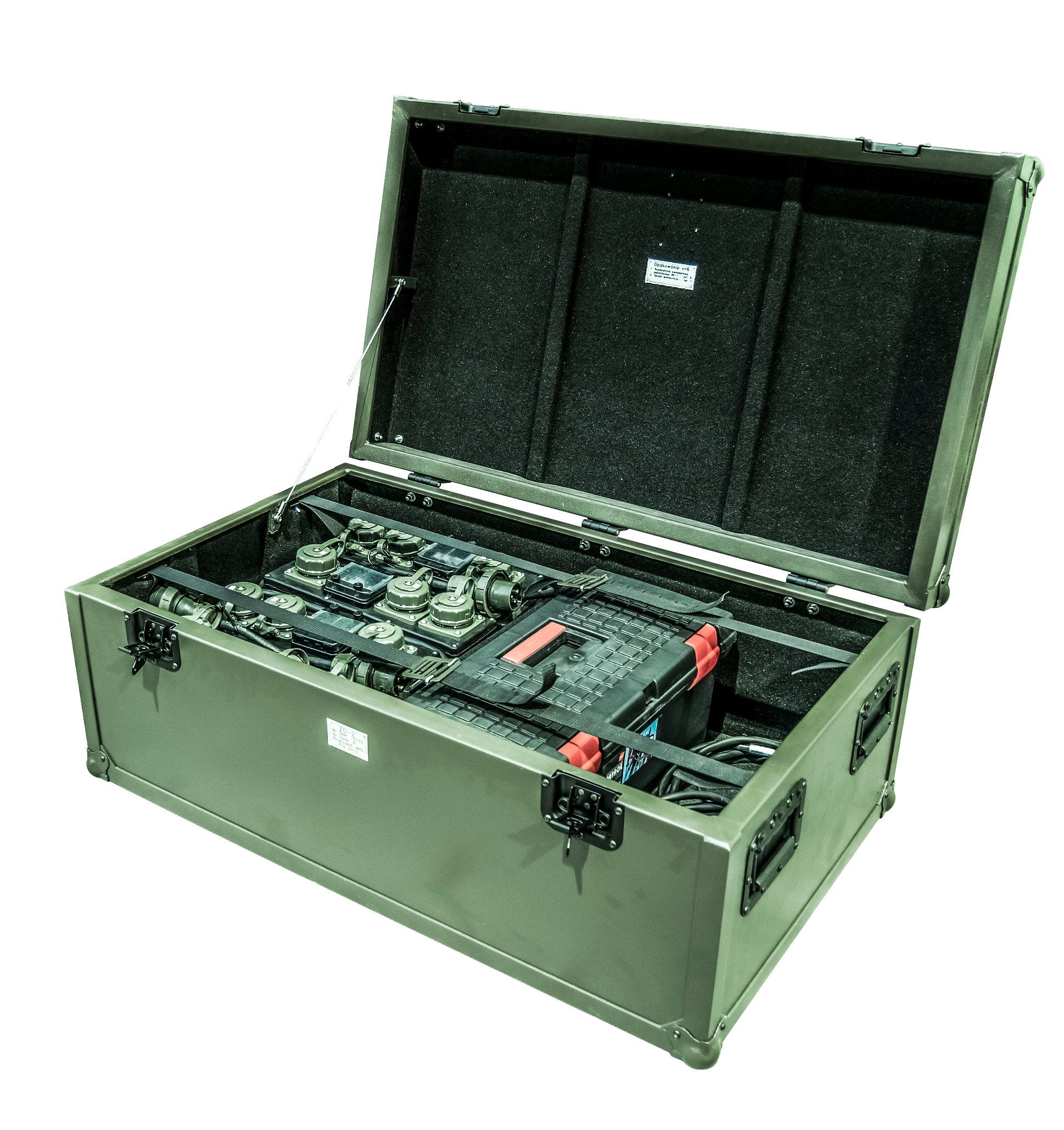 Zestaw zamknięty jest w wytrzymałych skrzyniach transportowych, zabezpieczających komponenty podczas przewozu i składowania.