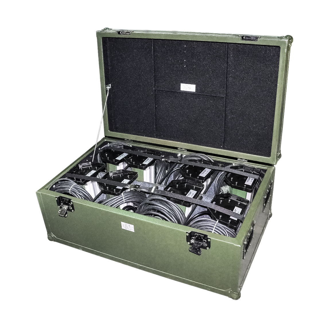 Zestaw zamknięty jest w wytrzymałych skrzyniach transportowych, zabezpieczających komponenty podczas przewozu i składowania.